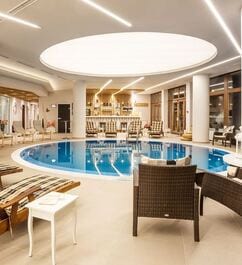 - Mountain wellness lounge- כ-1350 מ"ר של ספא אלגנטי ומושקע עמוס אפשרויות- חמאם, חדר מלח, סאונות, ג'קוזי, בריכה מקורה עם נוף הרים, חד"כ, טיפולים ועוד.